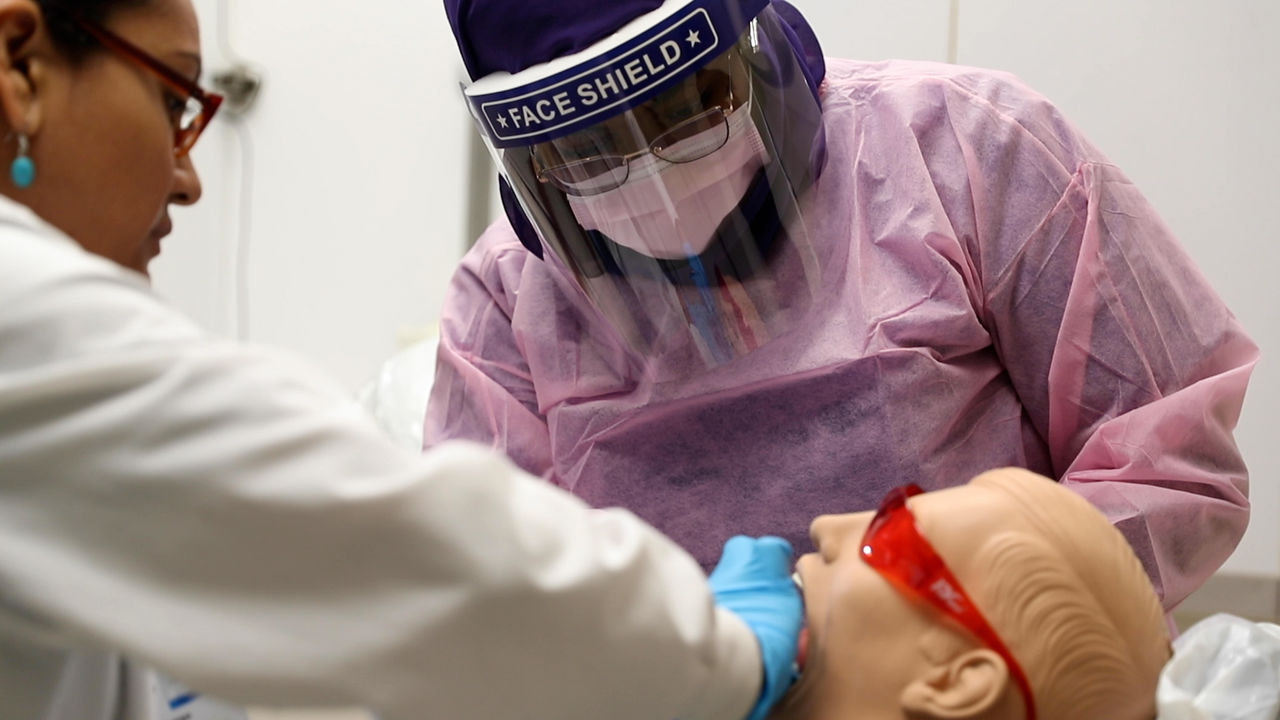 Taking X-rays of patients’ teeth under the supervision of a dentist