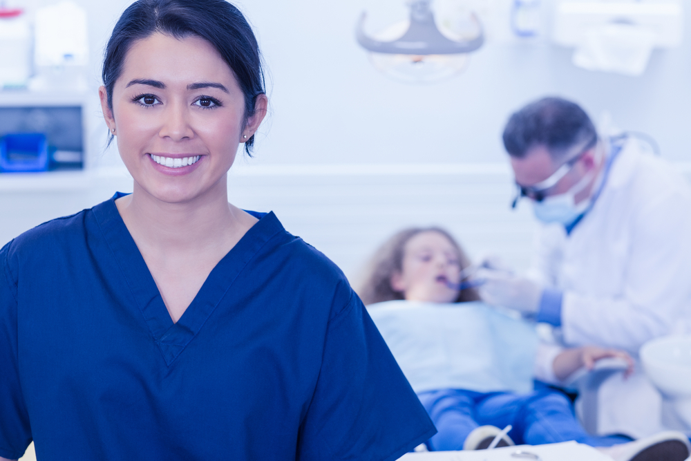 Dental assistants work alongside dentists to help provide quality oral health care and patient education. On the job, dental assistants may perform a variety of patient care, office and laboratory duties. Duties can include preparing patients and the dentist’s work area for treatments and procedures, drying patients’ mouths using suction hoses and other equipment, record keeping and scheduling duties. Because this is such a wide range of skills, successful dental assistants must have the right combination of interpersonal and technical skills, which makes them invaluable members of the dental team.